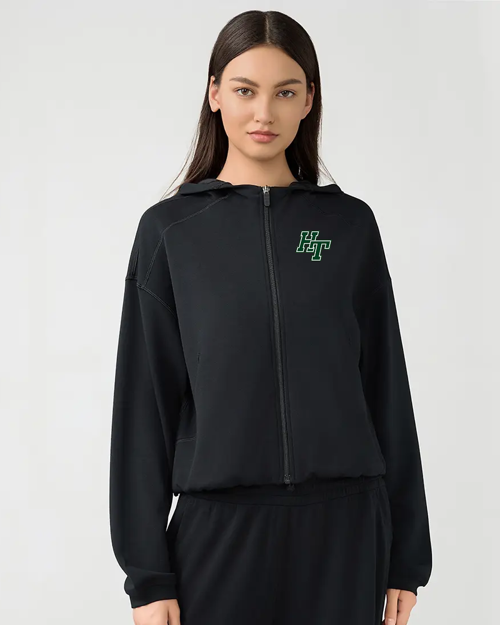 Hamilton Women Solid Fitness Top Full Zipper Pockets Sports Hoodie
